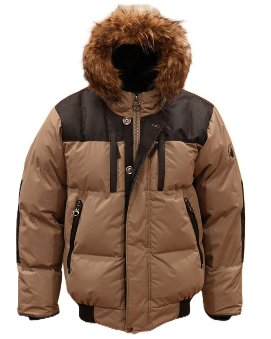 Boys Heavy Mix-Media Bubble Winter Jacket with Zip-off Hood and Removable Faux Fur